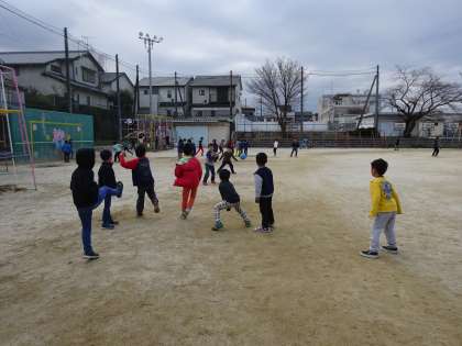 男の子が中心になって,ドッジボールをしていました。