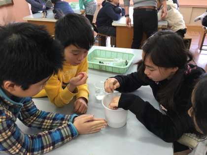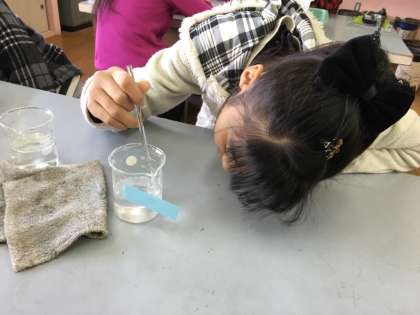 予想したことを確かめます。とけていく様子を確かめながら、結果をまとめていきます。