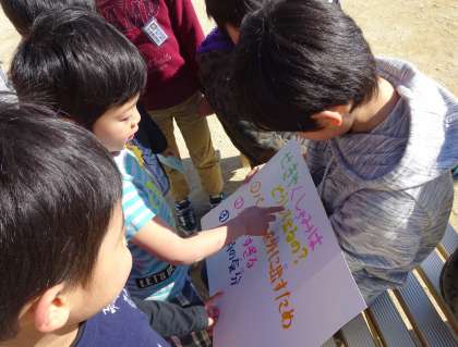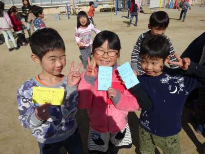 寒い日でしたが,外で元気よくクイズラリーを楽しんでいました。