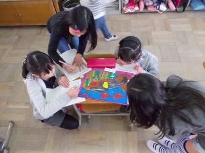 色の濃淡などからもたくさんの物語を見つけることができていました。