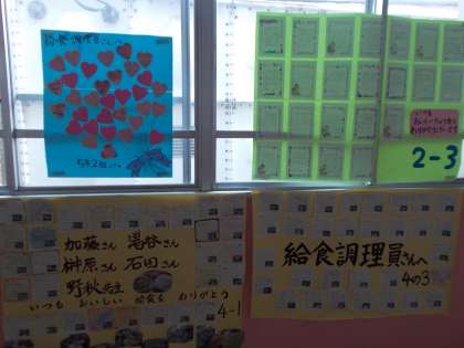 給食週間の時に給食調理員さんへ書いたお手紙が続々と給食室に届けられています。