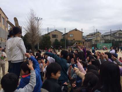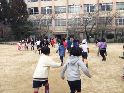 保健委員によるじゃんけん大会です。じゃんけんに負けると「その場で10回ジャンプ」「運動場を一周走る」「運動場をスキップで一周する」「その場で腿上げジャンプ」などの課題が出ます。寒くてもしっかりと身体を動かすことができました。なかには勝ったけれども身体を温めるために走ったりジャンプしたりしている子もいました。身体がぽかぽかになりました。