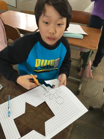 方眼紙を使い、展開図を作りました。うまく立体にできたでしょうか?