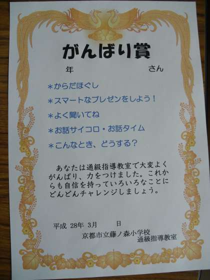 今年度も通級指導教室にたくさんのご協力とご理解を賜りましてありがとうございました。厚くお礼申しあげます。