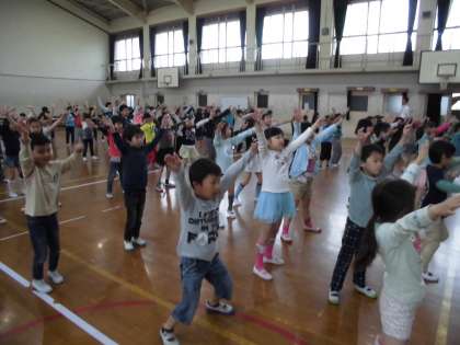 111名がしっかり声とタイミングを合わせて,元気よく踊っています♪