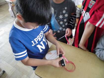 リボンがつるつる滑って,ホッチキスで止めるのはなかなか難しかったです。