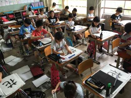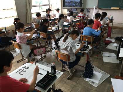 4年生の最初の書写は,3年生で学習した内容をふり返る意味で『花』を毛筆で書きました。