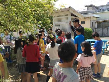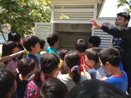子どもたちは興味を持って百葉箱の中をのぞいていました。