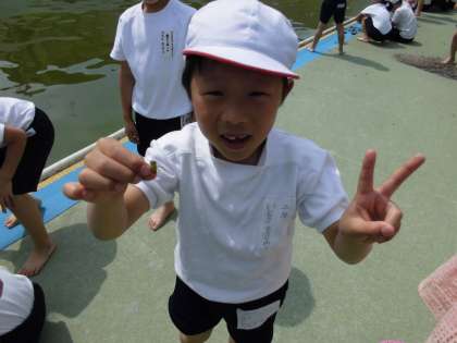 今週は,プールの中からヤゴを見つけました。