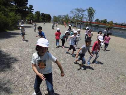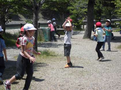 お弁当の後は,自由時間です。登山の疲れも忘れて,「おにごっこ」や「だるまさんが転んだ」など,体いっぱい使って,友だちと仲良く遊んでいました。この遠足を通して,みんなで大吉山に行って自然にいっぱい触れたこと,みんなで電車に乗ったことなど普段の学校生活ではできないことをたくさん経験することができました。