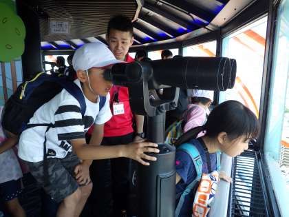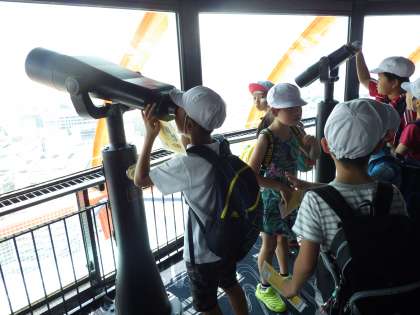 京都水族館でイルカが跳んでいる姿や藤ノ森小学校の校舎も見ることができました。