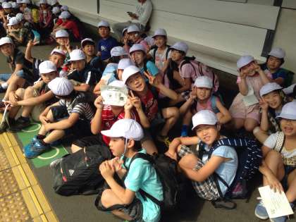 墨染で電車を待っています。みんなわくわくしています。