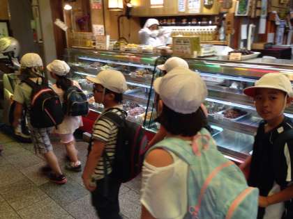 錦市場に到着しました。おいしそうなものがたくさんならんでいます。さすが京の台所!