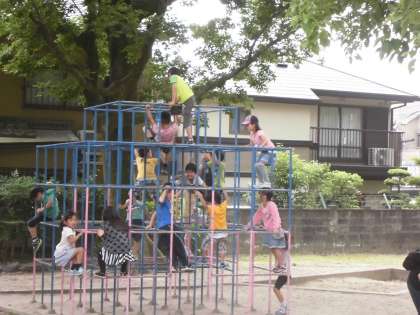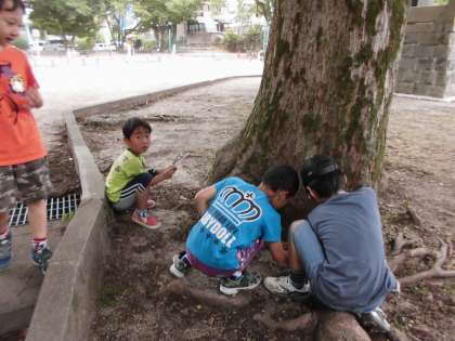今日は生活科「きせつとあそぼう」の学習で藤森神社に行きました。アジサイの花が咲いているのをみつけたり,ダンゴムシやハサミムシをみつけたり,友だちと汗いっぱいかきながら遊んだりしました。