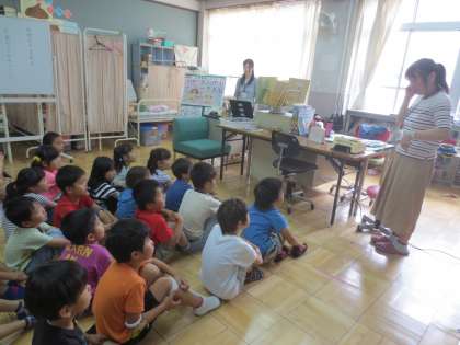 耳にヘッドホンをあてて、「ピー」という小さな音を聞く検査です。