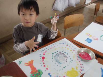 笑顔いっぱい!でも気づくとあちこちに絵の具が・・・