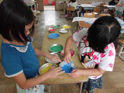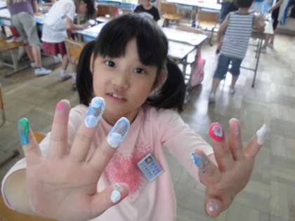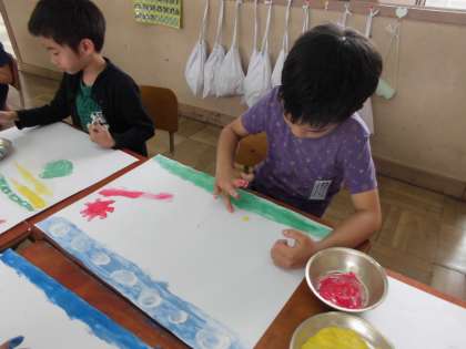 次は,自分の作品のお話を友だちに話したり,友だちの作品の良いところを見つけたりしましょう。