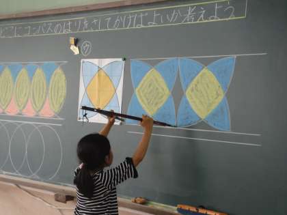 今日はコンパスを使って,模様づくりに挑戦!