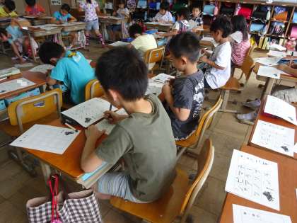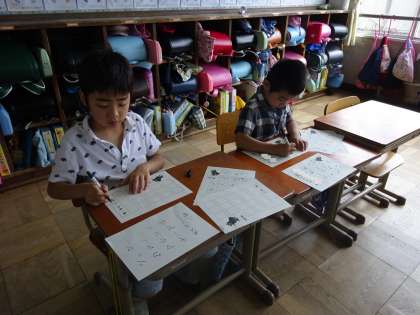 書写の学習では,カタカナの形に気をつけて丁寧に書く学習をしました。1・2・3・4の部屋,とめ・はね・はらいを意識し書きました。