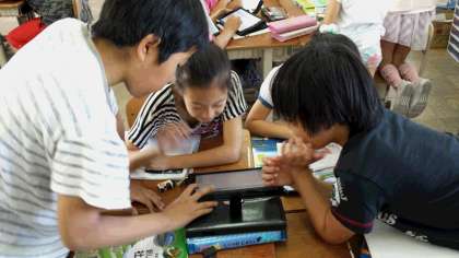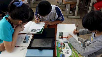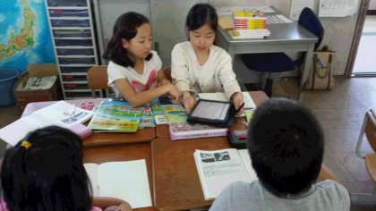 社会科「国土と気候の特色」では、「梅雨や台風には、どのような特色があるのだろう。」というめあてを立てて、班で調べる活動をしました。教科書や資料集とともに、ipadを利用して、情報を収集しました。