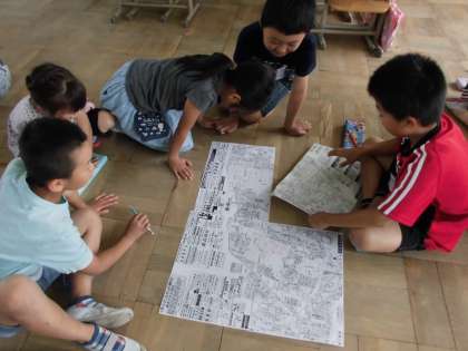 たくさんの情報がかかれている地図を見て,まず子どもたちが探した場所は・・・