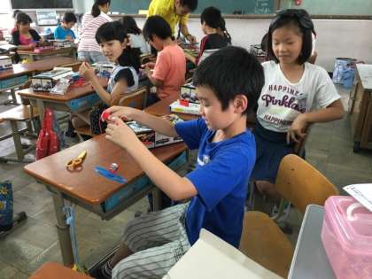 プロペラの回る向きが人によってちがうことに気付いた子どもたち。時計まわりだったり,反時計まわりだったり…