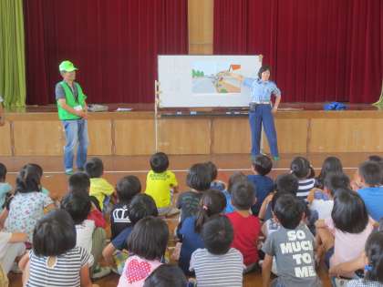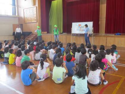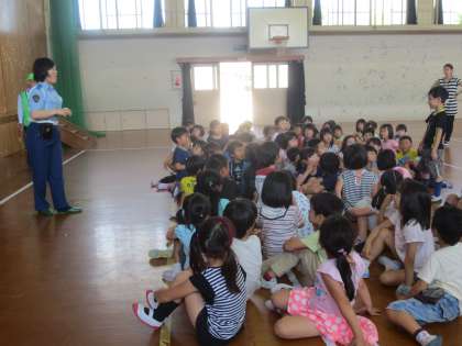 体育館にあつまって,伏見警察署の方のお話を聞きました。