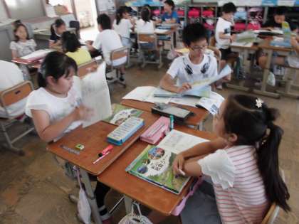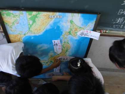 雨温図と地形図をたよりに、日本各地の気候の特色について話し合いました。季節風や台風、梅雨、土地の高い低い、南北、日本海側と太平洋側で、気候に違いがあることに気付きました。