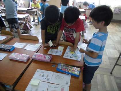 町探検で行っていない方面の方には,何があったのかなと交流カードで情報交換をしました。