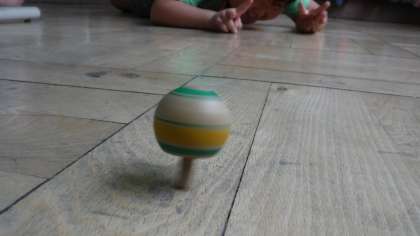 上手にたたいて回し続けるのは難しいようです…