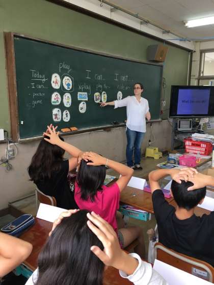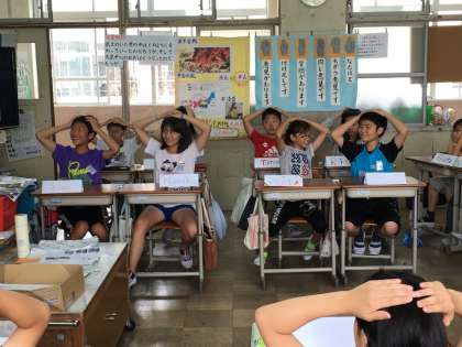 ALTのサラ先生と一緒に「〜ができる/できない」を英語を使って表現する活動を行いました。しっかり発音できたかな?