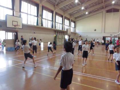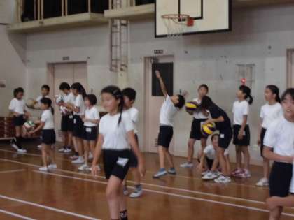 レシーブ・トス・アタックの動きも,ネットをはさんで練習しました。