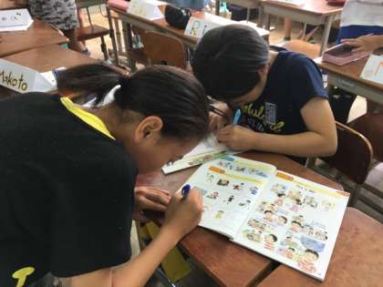 英語を使って、「○○はできますか?」という表現を使ったインタビューゲームを行いました。真剣に聞き合うことで、自然と英語を使った表現に慣れ親しむことができます。