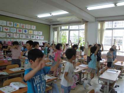 音楽科では,拍の流れにのり,リズムに気をつけて,体を動かしながら歌っています。みんなとっても楽しんで歌っています。