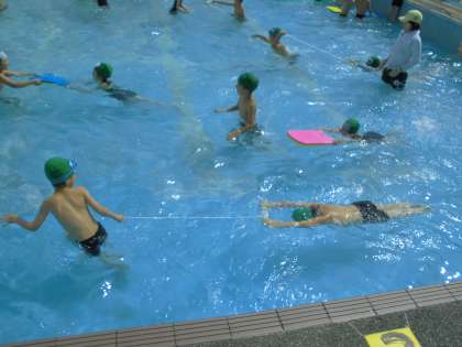 すいすいコースの技を教えてもらって,すーいすーいと泳ぎました。