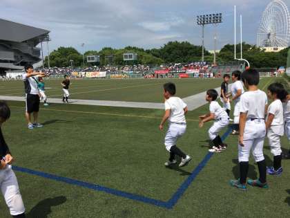 7月3日(日)に行われた、毎年恒例のフレンドシップゲームに参加してきました。相手は「びわこジュニアパンサーズ・京都クラッシュベアーズ合同チーム」でした。暑さに負けず、熱い戦い!