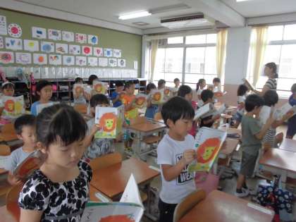 はっきりと口形を意識し,言葉のまとまりやリズムなどを楽しんで音読しています。