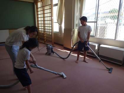 汗を流して自分たちの教室を一生懸命掃除しました。