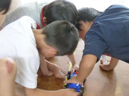 大喜び。長く伸ばすと距離がのびたり速さが変わったり,たくさんしくみを発見することができました。