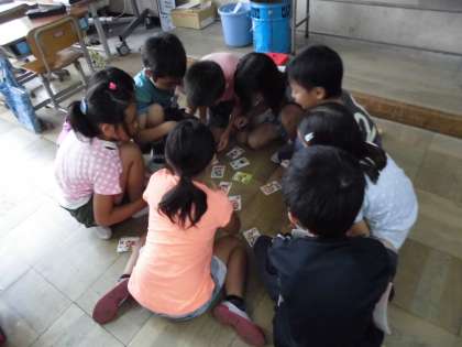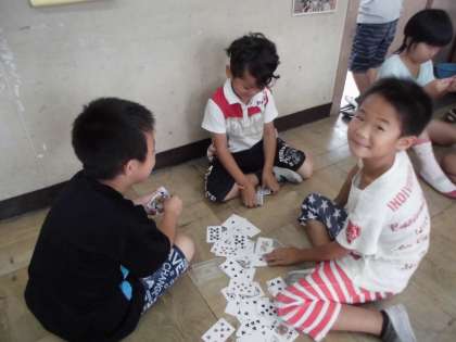 雨の日には,カルタやトランプをして教室で過ごしています。