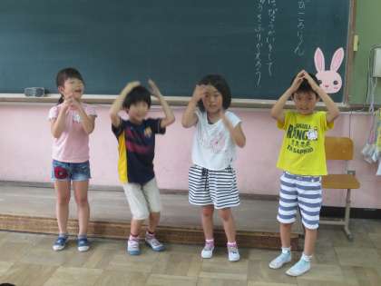 声の出し方や動き,発表の仕方など,よかったところを出し合って,これからの学習に生かしていくことを話し合いました。次は,「おおきなかぶ」で音読を楽しみます。