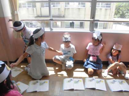 明日は「おむすびころりん」の音読発表会です。どうやったら,よりよい発表になるかをグループで話し合い,練習をしました。明日はきっと素敵な発表会になるでしょう。楽しみです。