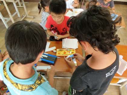 夏休み前のお楽しみ会に向けて,みんなで準備を進めています。