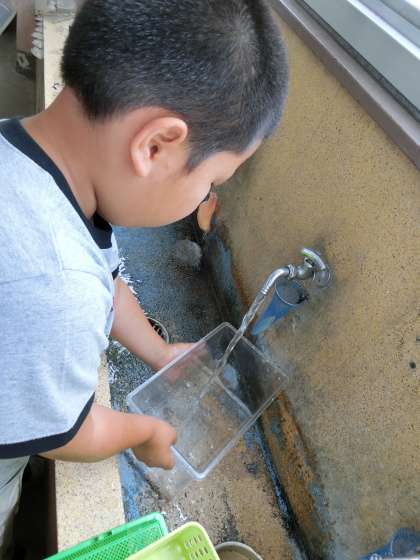 育ててきた生き物の観察・まとめを終え,生活科としての学習が終わりました。生き物を育てていた観察かごを洗い,しっかりと片付けました。