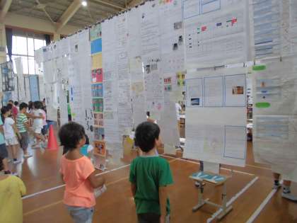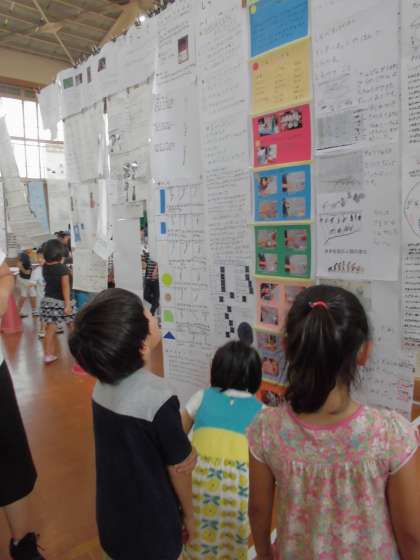 など,子どもたちは,他の学年の子どもたちの自由研究を興味深く見ていました。