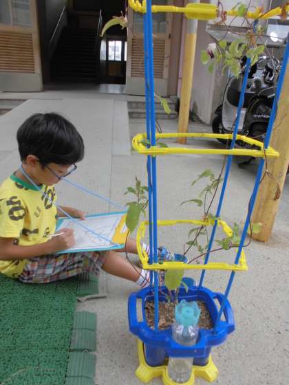 生活科の学習で,夏休みに家に持って帰っていたあさがおの観察をしました。