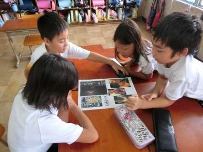 様々な写真から,支える人々,山を見ながら魂を送り出す人々の気持ちを考えました。ただきれいなだけでなく,京都の伝統的な大切な行事だと知りました。