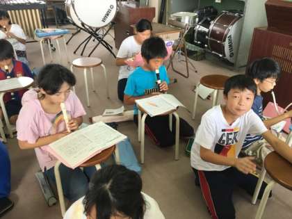音楽では、小グループに分かれて「アンサンブル」に挑戦中。それぞれのパートを一人で演奏・・・。緊張します。