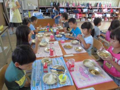 入学当初は初めて食べるメニューに苦戦したり,なかなか時間内に食べることができなかったりしていた一年生ですが,最近は時間内に食べることができるようになってきました。残菜もほとんどありません!