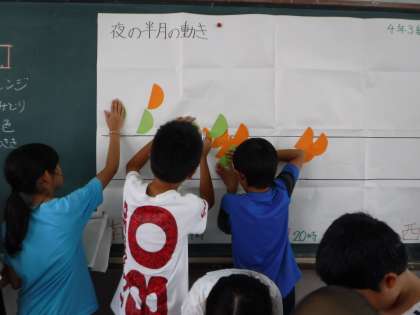 位置がどうなったのか、みんなの観察結果を一枚にまとめてみよう。
